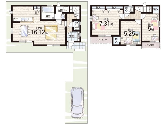 - ※完成予想図やCG合成画像は、門塀・植栽・庭・外観等、実際とは多少異なる場合があります。