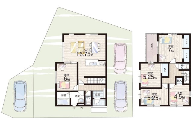 - ※完成予想図やCG合成画像は、門塀・植栽・庭・外観等、実際とは多少異なる場合があります。
