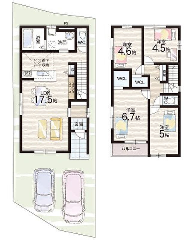 2号地 間取り 4LDK 価格 5799万円 建物面積 96.99m2 土地面積 106.21m2 -
