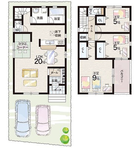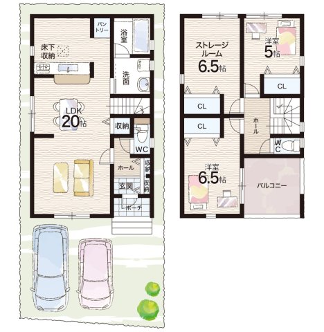 - ※完成予想図やCG合成画像は、門塀・植栽・庭・外観等、実際とは多少異なる場合があります。