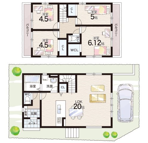 - ※完成予想図やCG合成画像は、門塀・植栽・庭・外観等、実際とは多少異なる場合があります。