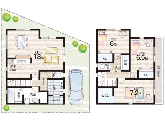 - ※完成予想図やCG合成画像は、門塀・植栽・庭・外観等、実際とは多少異なる場合があります。
