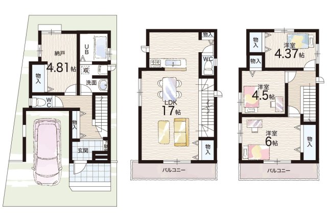 C号地 間取り 3LDK+S(納戸) 価格 3690万円 建物面積 88.17m2 土地面積 61.26m2 -