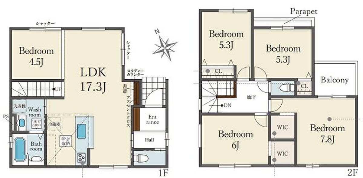 1区画 間取り 5LDK 価格 4798万円 建物面積 105.89m2 土地面積 105.58m2 -