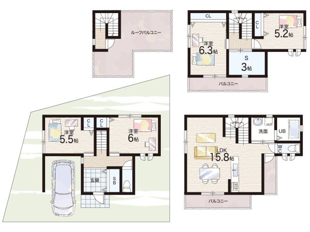 | 間取り | 4LDK+S(納戸) | 建物構造 | 木造 地上3階建て |