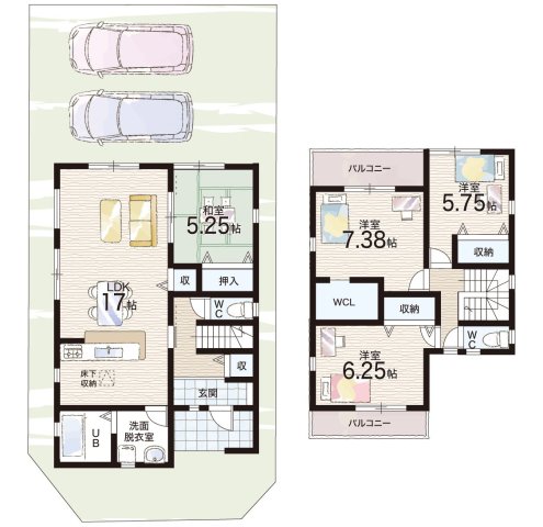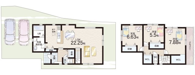 - ※完成予想図やCG合成画像は、門塀・植栽・庭・外観等、実際とは多少異なる場合があります。
