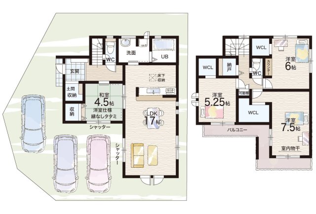 - ※完成予想図やCG合成画像は、門塀・植栽・庭・外観等、実際とは多少異なる場合があります。