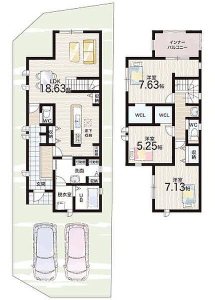 - ※完成予想図やCG合成画像は、門塀・植栽・庭・外観等、実際とは多少異なる場合があります。