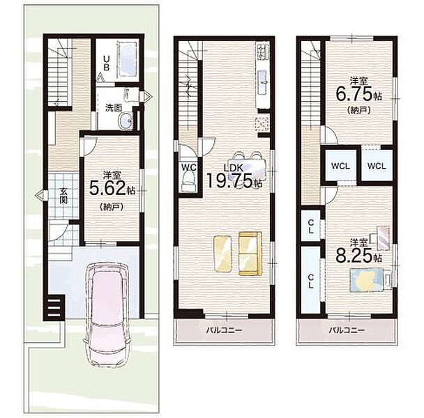 | 間取り | 1LDK+S(納戸) | 建物構造 | 木造 地上3階建て |
