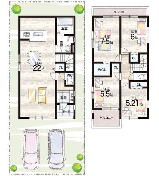 - ※完成予想図やCG合成画像は、門塀・植栽・庭・外観等、実際とは多少異なる場合があります。