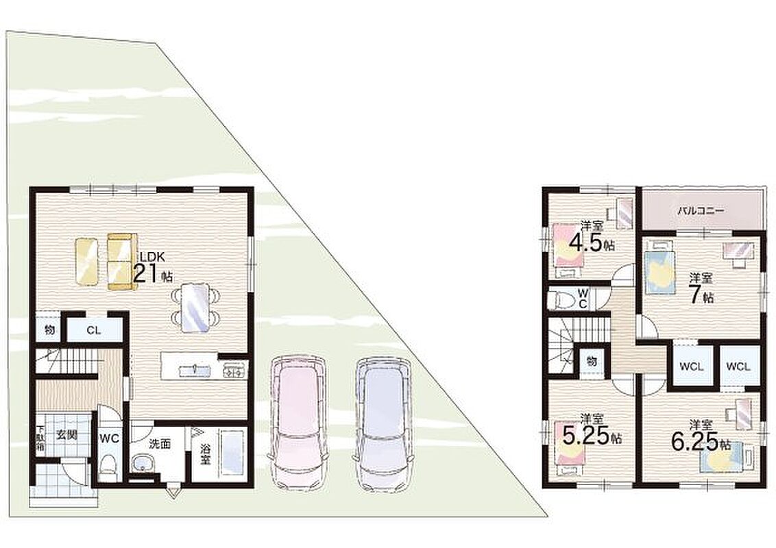 - ※完成予想図やCG合成画像は、門塀・植栽・庭・外観等、実際とは多少異なる場合があります。