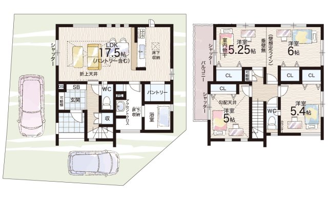 - ※完成予想図やCG合成画像は、門塀・植栽・庭・外観等、実際とは多少異なる場合があります。