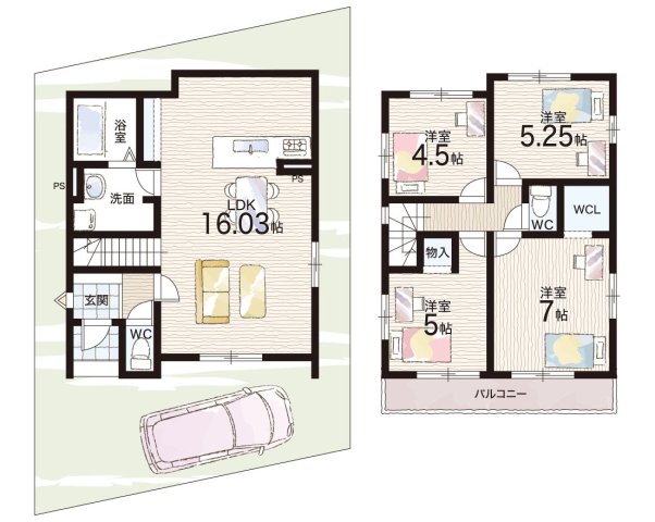 - ※完成予想図やCG合成画像は、門塀・植栽・庭・外観等、実際とは多少異なる場合があります。