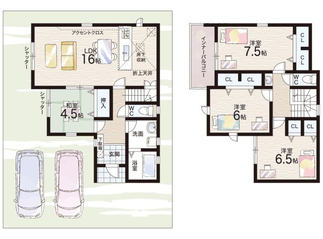 - ※完成予想図やCG合成画像は、門塀・植栽・庭・外観等、実際とは多少異なる場合があります。