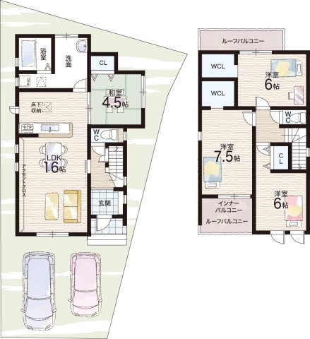 - ※完成予想図やCG合成画像は、門塀・植栽・庭・外観等、実際とは多少異なる場合があります。