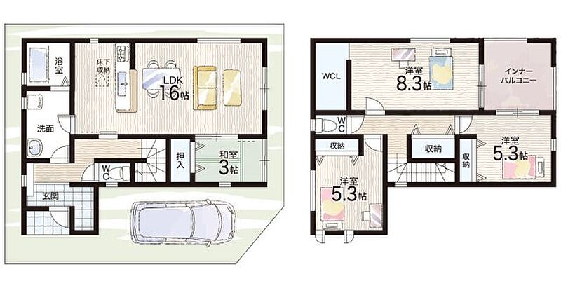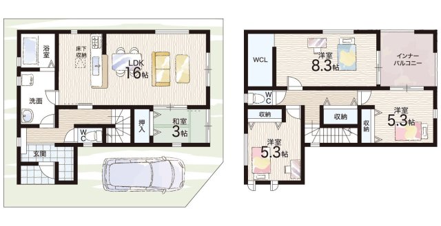 - ※完成予想図やCG合成画像は、門塀・植栽・庭・外観等、実際とは多少異なる場合があります。