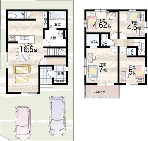 - ※完成予想図やCG合成画像は、門塀・植栽・庭・外観等、実際とは多少異なる場合があります。