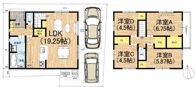 | 駐車場 | 2台 | 道路の幅員 | 北側6.0m公道 |