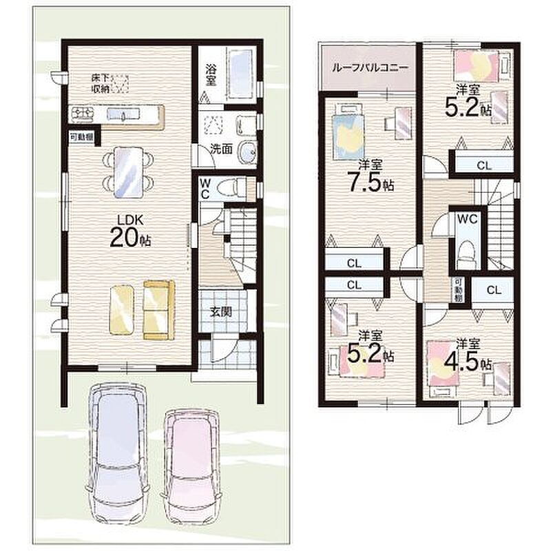 - ※完成予想図やCG合成画像は、門塀・植栽・庭・外観等、実際とは多少異なる場合があります。