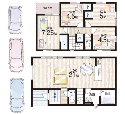 - ※完成予想図やCG合成画像は、門塀・植栽・庭・外観等、実際とは多少異なる場合があります。