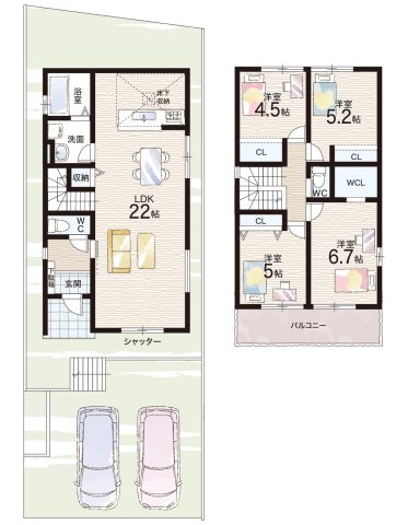 - ※完成予想図やCG合成画像は、門塀・植栽・庭・外観等、実際とは多少異なる場合があります。