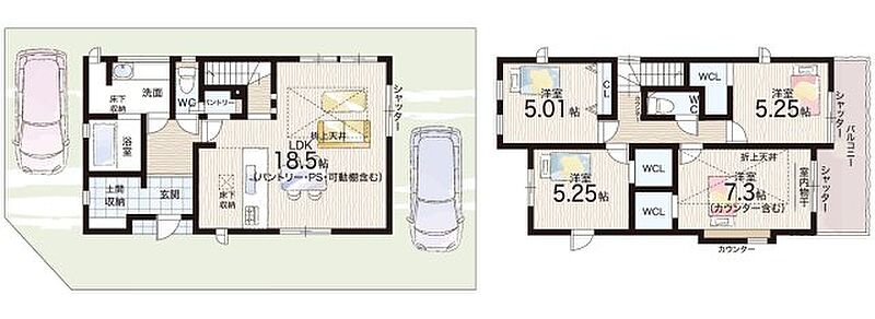- ※完成予想図やCG合成画像は、門塀・植栽・庭・外観等、実際とは多少異なる場合があります。