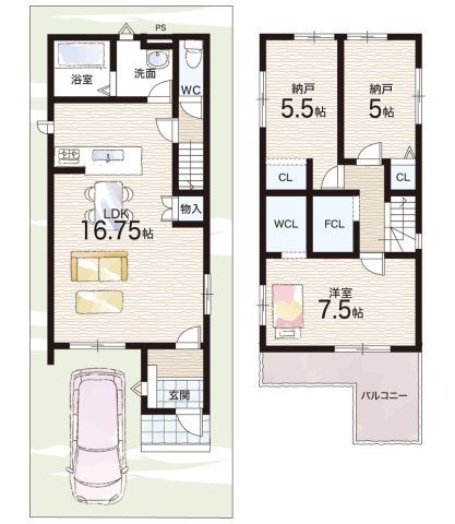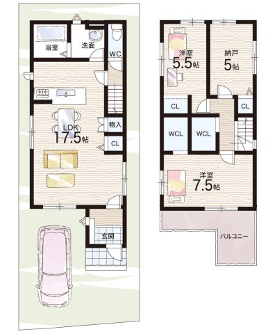 - ※完成予想図やCG合成画像は、門塀・植栽・庭・外観等、実際とは多少異なる場合があります。