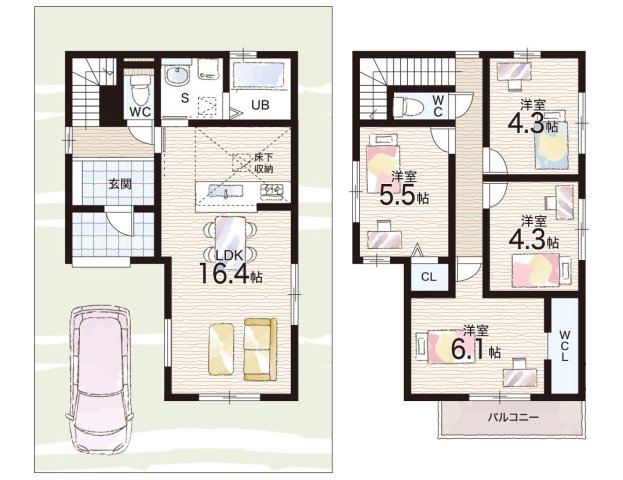 - ※完成予想図やCG合成画像は、門塀・植栽・庭・外観等、実際とは多少異なる場合があります。