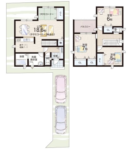 - ※完成予想図やCG合成画像は、門塀・植栽・庭・外観等、実際とは多少異なる場合があります。