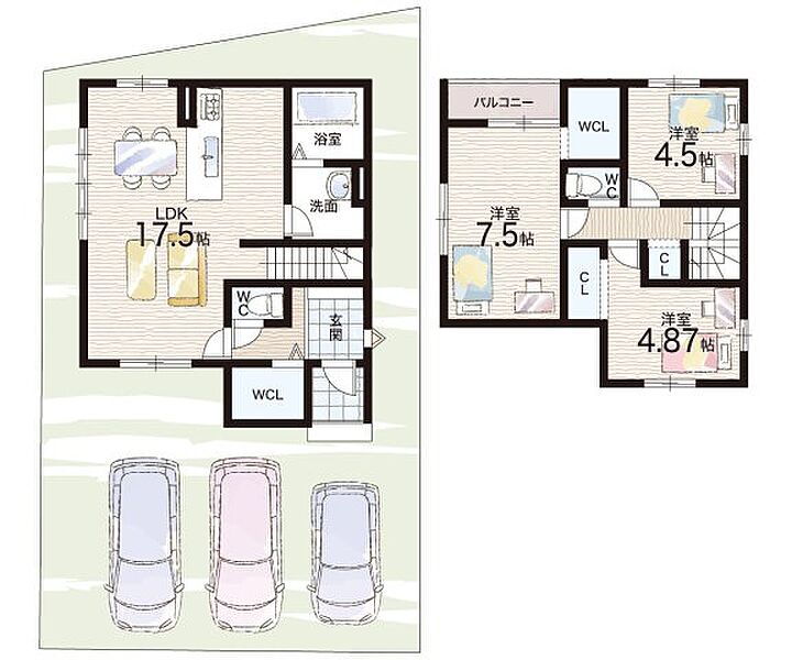 | 駐車場 | 3台 | 道路の幅員 | 北側6.0m公道 |