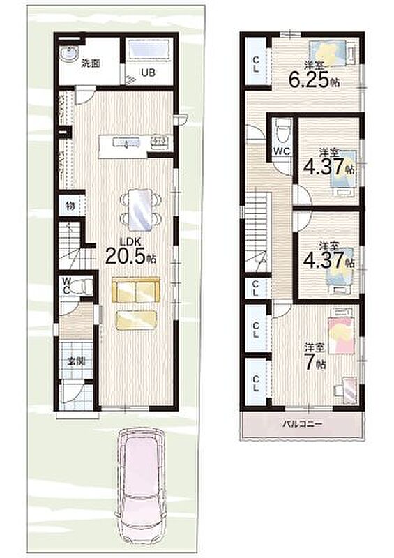 - ※完成予想図やCG合成画像は、門塀・植栽・庭・外観等、実際とは多少異なる場合があります。