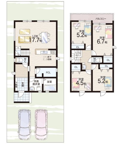 - ※完成予想図やCG合成画像は、門塀・植栽・庭・外観等、実際とは多少異なる場合があります。
