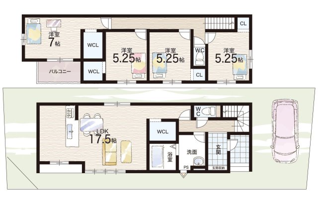 - ※完成予想図やCG合成画像は、門塀・植栽・庭・外観等、実際とは多少異なる場合があります。