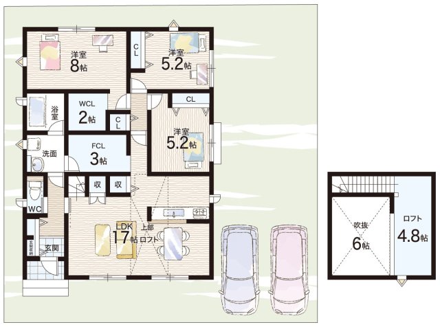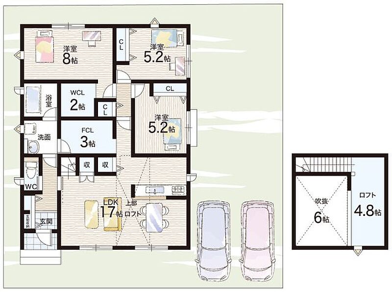 - ※完成予想図やCG合成画像は、門塀・植栽・庭・外観等、実際とは多少異なる場合があります。
