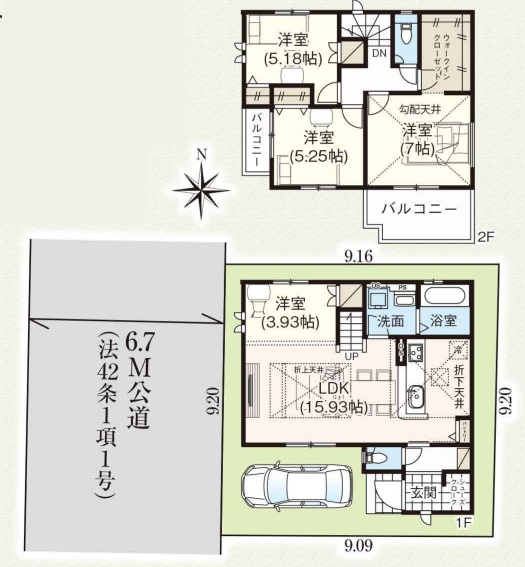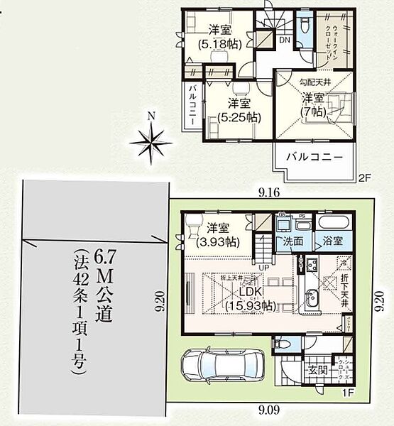 | 駐車場 | 1台 | 道路の幅員 | 西側6.7m公道 |