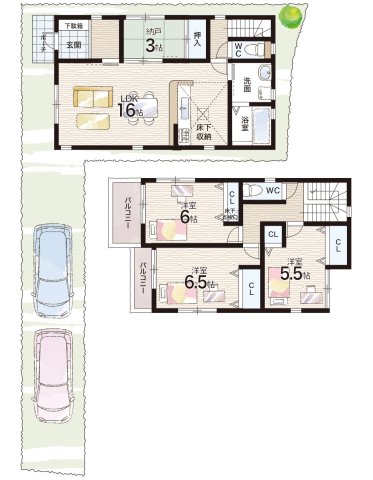 - ※完成予想図やCG合成画像は、門塀・植栽・庭・外観等、実際とは多少異なる場合があります。