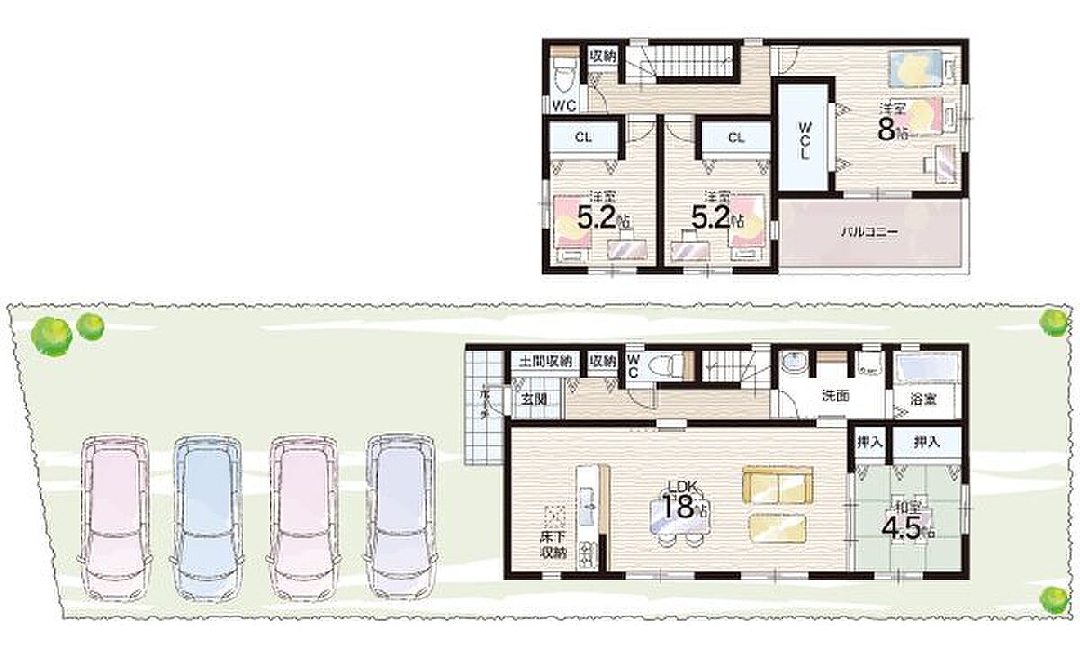 | 駐車場 | 4台 | 道路の幅員 | 南側4.0m公道 |