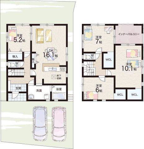 - ※完成予想図やCG合成画像は、門塀・植栽・庭・外観等、実際とは多少異なる場合があります。