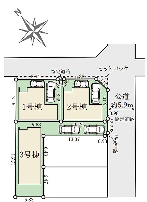 | 駐車場 | 2台 | 道路の幅員 | 北東側4.0m公道 |