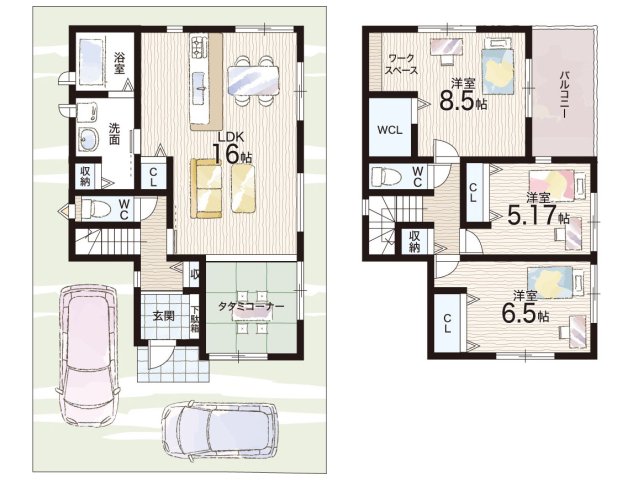 - ※完成予想図やCG合成画像は、門塀・植栽・庭・外観等、実際とは多少異なる場合があります。