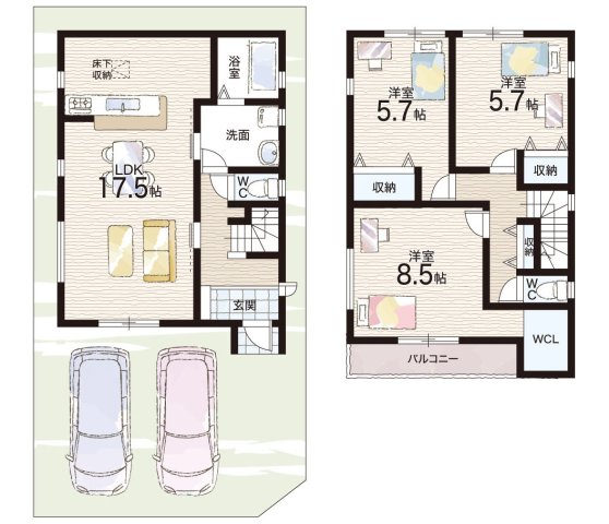 - ※完成予想図やCG合成画像は、門塀・植栽・庭・外観等、実際とは多少異なる場合があります。
