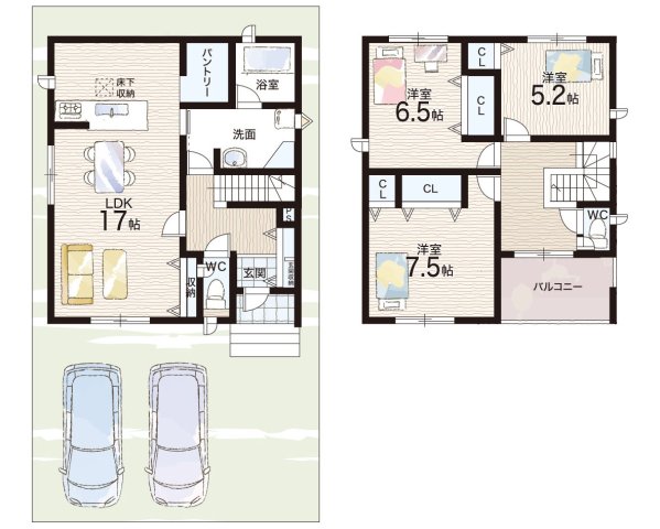 - ※完成予想図やCG合成画像は、門塀・植栽・庭・外観等、実際とは多少異なる場合があります。