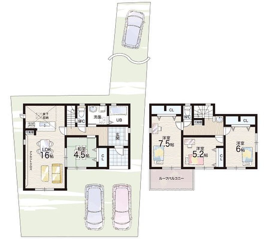 - ※完成予想図やCG合成画像は、門塀・植栽・庭・外観等、実際とは多少異なる場合があります。