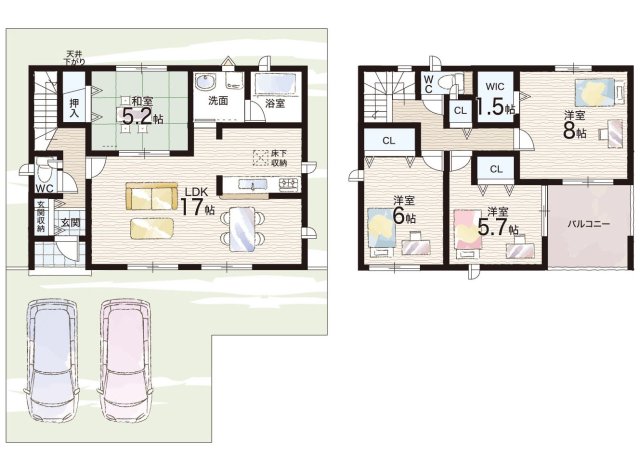 - ※完成予想図やCG合成画像は、門塀・植栽・庭・外観等、実際とは多少異なる場合があります。