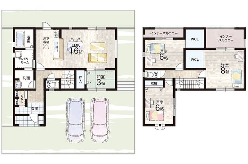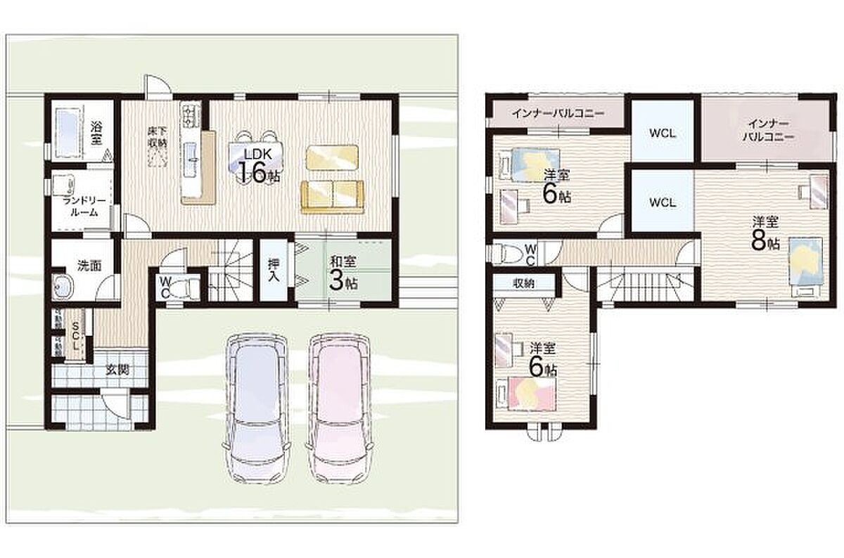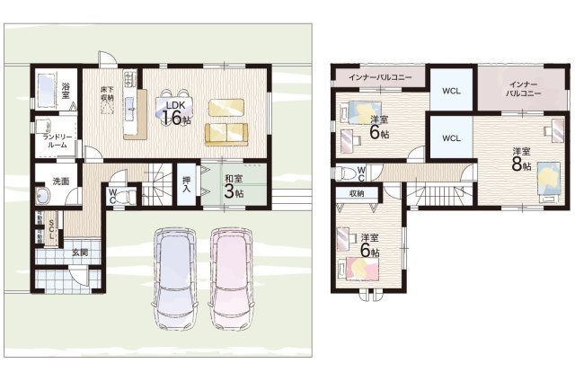 - ※完成予想図やCG合成画像は、門塀・植栽・庭・外観等、実際とは多少異なる場合があります。