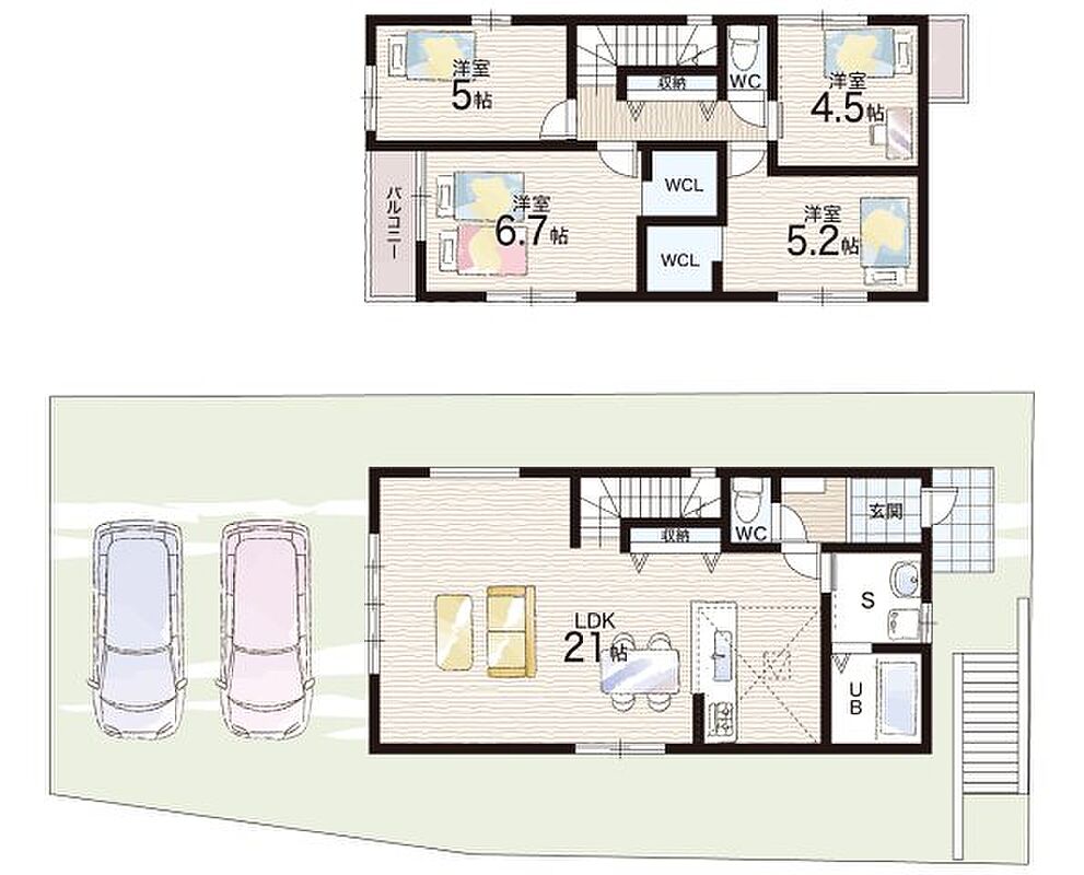 - ※完成予想図やCG合成画像は、門塀・植栽・庭・外観等、実際とは多少異なる場合があります。