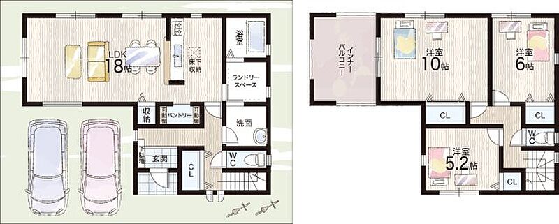 - ※完成予想図やCG合成画像は、門塀・植栽・庭・外観等、実際とは多少異なる場合があります。