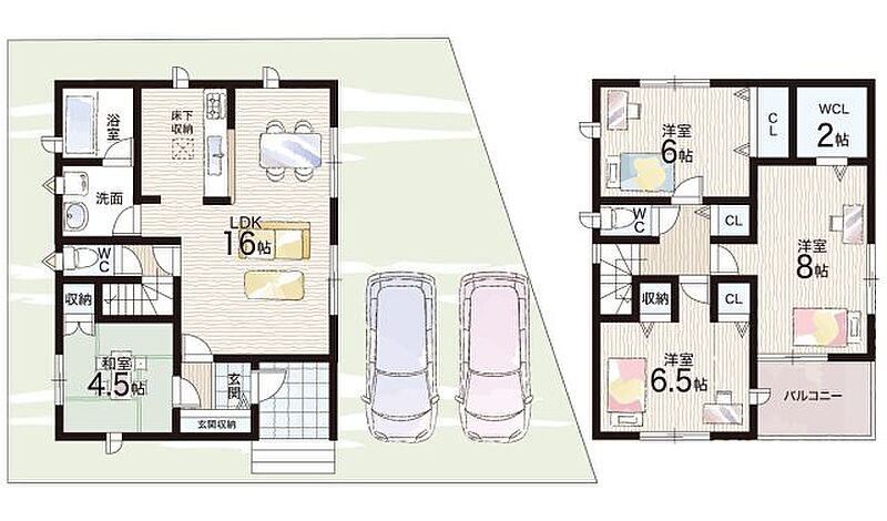 - ※完成予想図やCG合成画像は、門塀・植栽・庭・外観等、実際とは多少異なる場合があります。