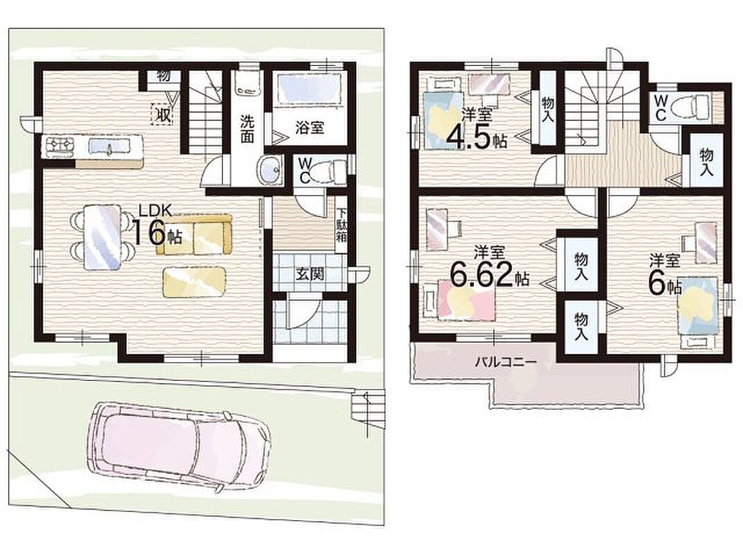 - ※完成予想図やCG合成画像は、門塀・植栽・庭・外観等、実際とは多少異なる場合があります。