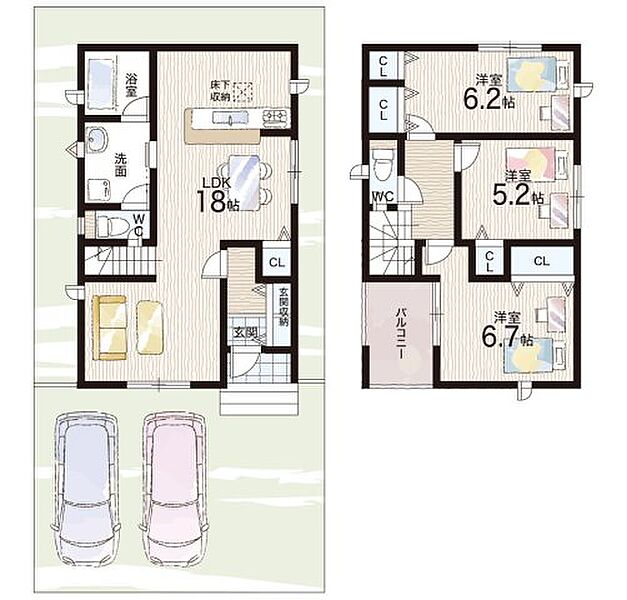 - ※完成予想図やCG合成画像は、門塀・植栽・庭・外観等、実際とは多少異なる場合があります。